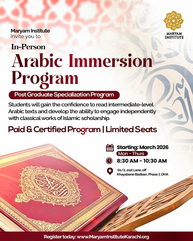 Students will gain the confidence to read intermediate-level Arabic texts and develop the ability to engage independently with classical works of Islamic scholarship.